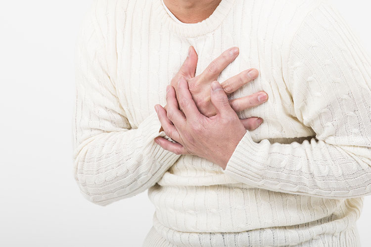 循環器疾患でよくみられる症状としては、胸の痛みや締め付けられるような違和感、動悸、息苦しさ、胸やけや冷や汗が出る、気が遠くなるなどがあります。こうした症状がある場合は、お早めにご受診ください。また健康診断で、高血圧や心電図での異常などを指摘された際もご相談ください。